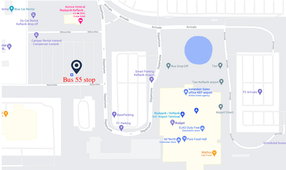 There are plenty of car companies at the airport to choose from. The myriad goes from the well-known ones, like Sixt, Enterprise, and Hertz, to local companies like Blue Car Rental Iceland. All of them offer a shuttle bus nearby the P2 parking, but if you prefer to walk, it’ll take you less than five minutes to their airport offices.